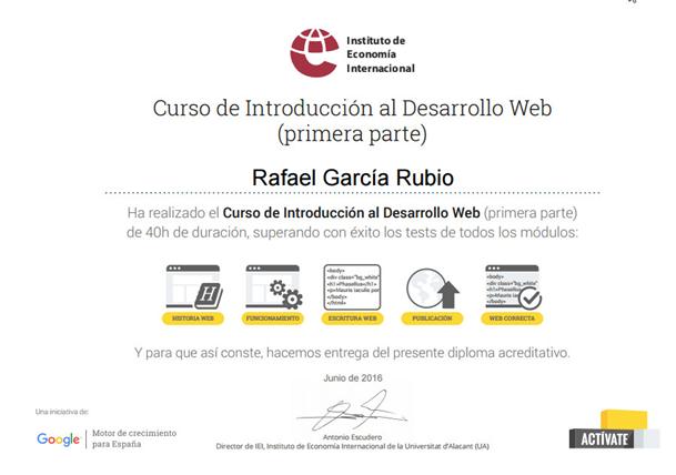 No tiene otro objeto que hacerme practicar el Desarrollo Web Aquí os dejo un enlace a la Página del Curso (interesante) con la colaboración de la Universidad de Alicante. Pinchar el Banner. |